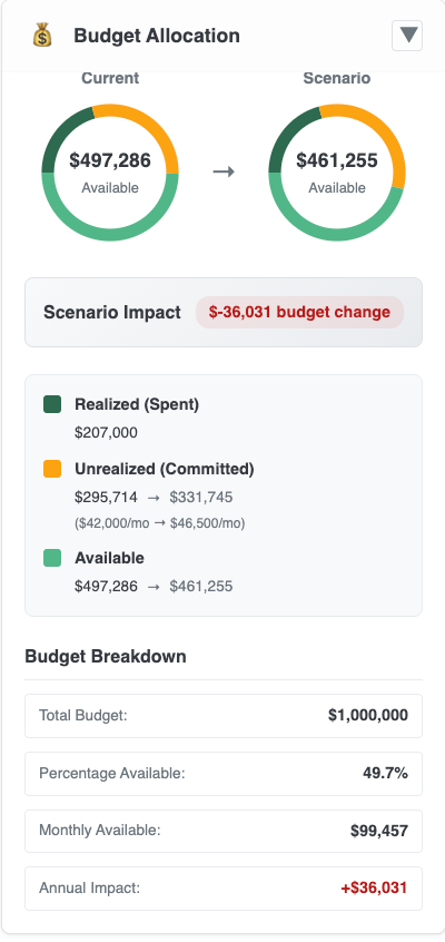 See exactly how much your next 6 months of hiring will cost before you commit. Plan multiple scenarios and pick the path that fits your runway.